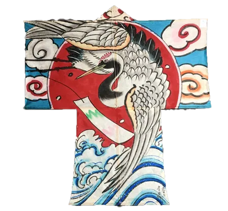 袖凧は、定紋や文字以外では、左にご覧頂いている通り、鶴などを丸型の中に描くのが特徴です。
