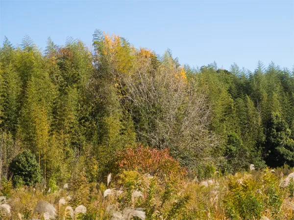粟生野蓮沼農園の付近は、里山の雰囲気もある、