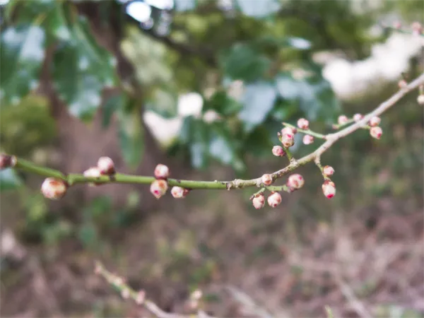すでに、つぼみを持ち、ピンク色に膨らんでいるものも見られます。