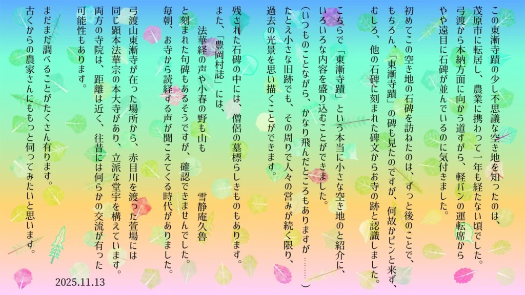 2025年11月14日 「東漸寺蹟」を公開しました。