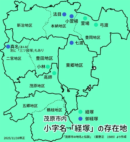 一方で、小字名として伝わり、昔、経塚というものが存在したことを連想できることもあります。